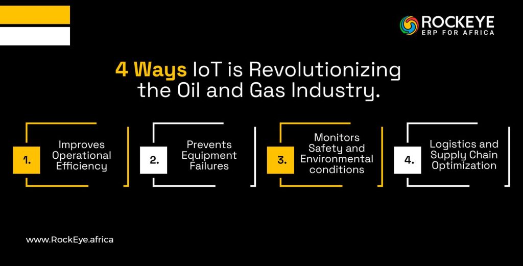 It is programmed in a way whereby the oil and gas industry gathers real-time data from sensors installed in equipment and infrastructure, by utilising IoT technology. This data can be used to monitor equipment performance, detect potential issues, and make informed decisions regarding maintenance and repairs.